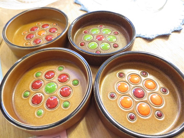 前回も紹介したホーンジー社は、食器の製造だけではなく、トレイ、ディッシュも希少ですが製造しています。コチラは、七宝スタイルのピンディッシュ。