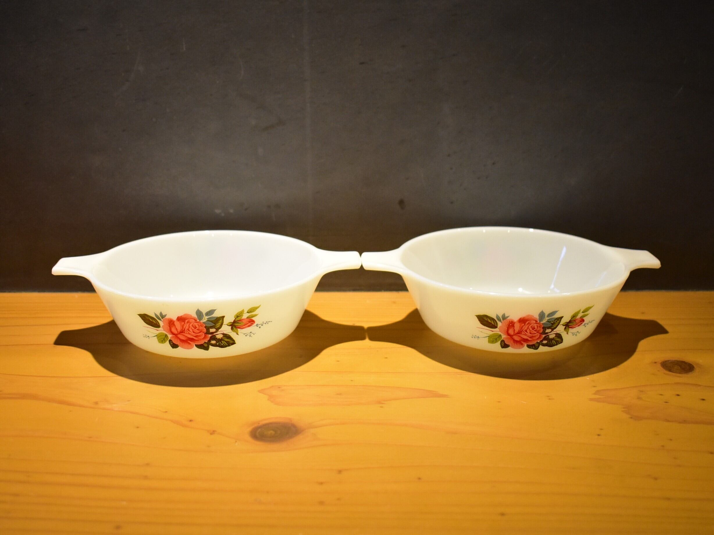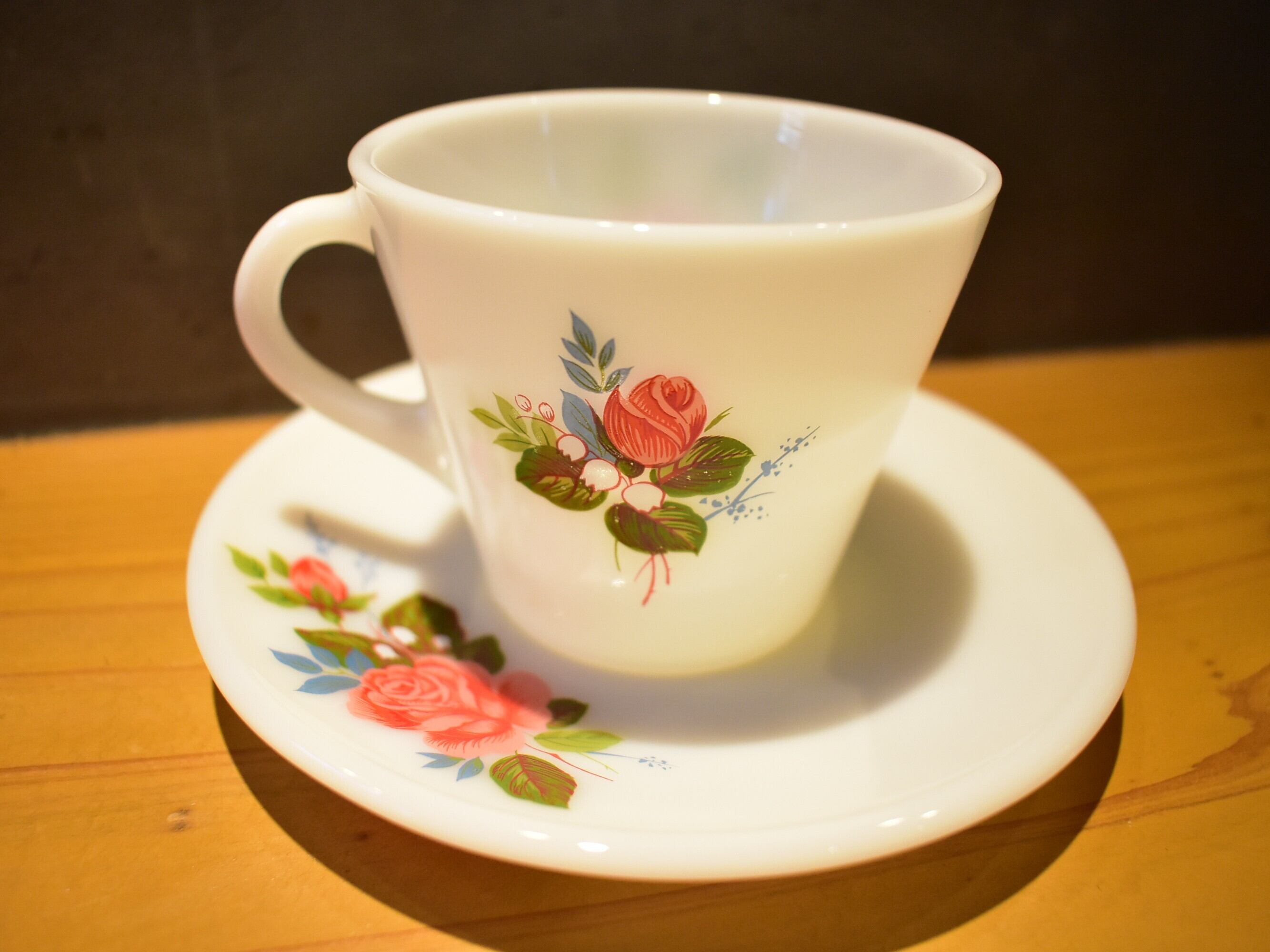 こちらは「コテージローズ」シリーズ、カップ、ソーサー、プレート(大)(小)、ボウルの5点x2セットとなります。5点セットで揃うことはあまりないのでこの機会にどうぞ。1970-73の生産品。