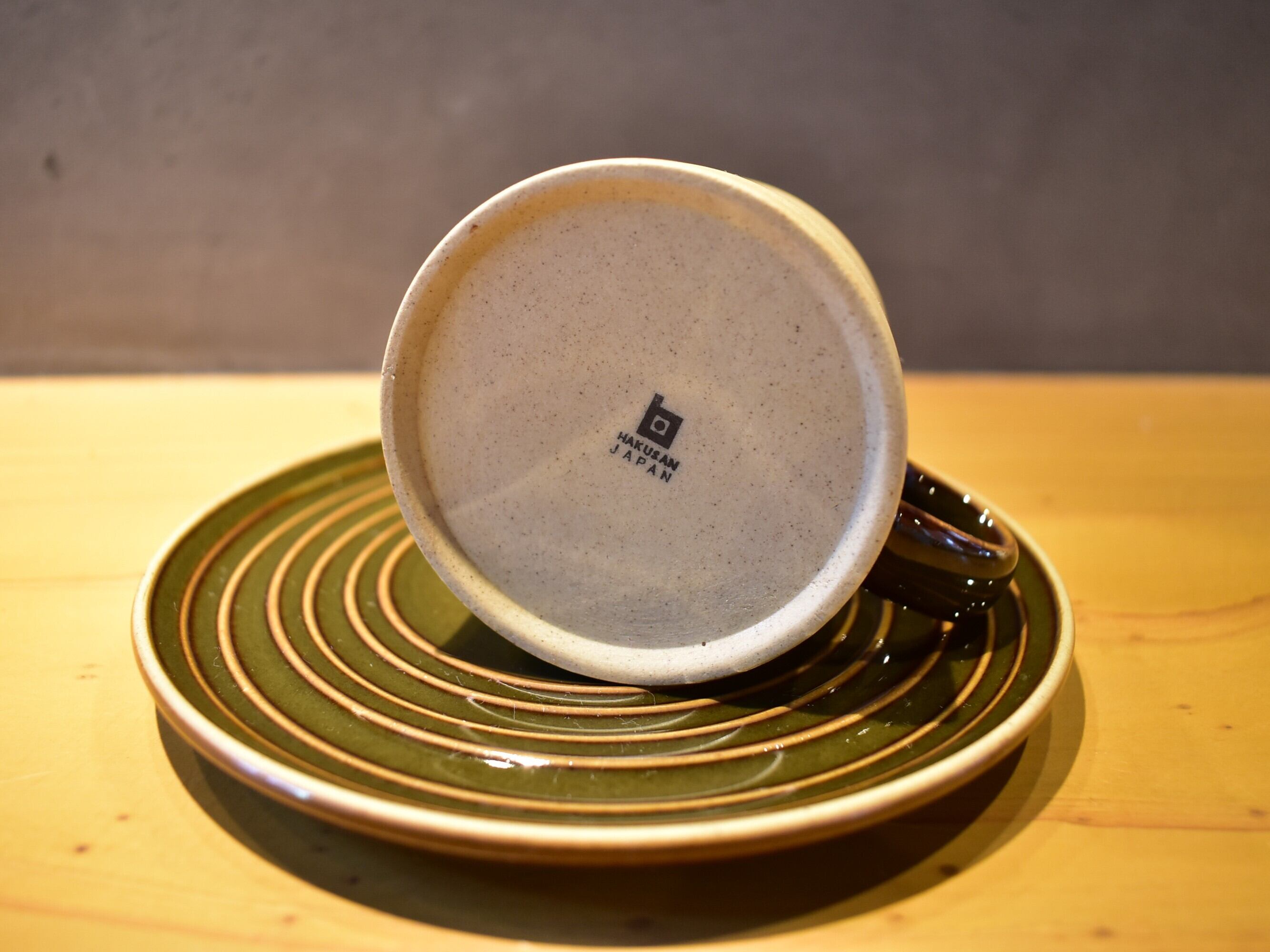 マットなカップ表面と、円が何重にも描かれ釉薬の効いたソーサーが見事にマッチしています。A型の美しいカップフォルムも魅力です。