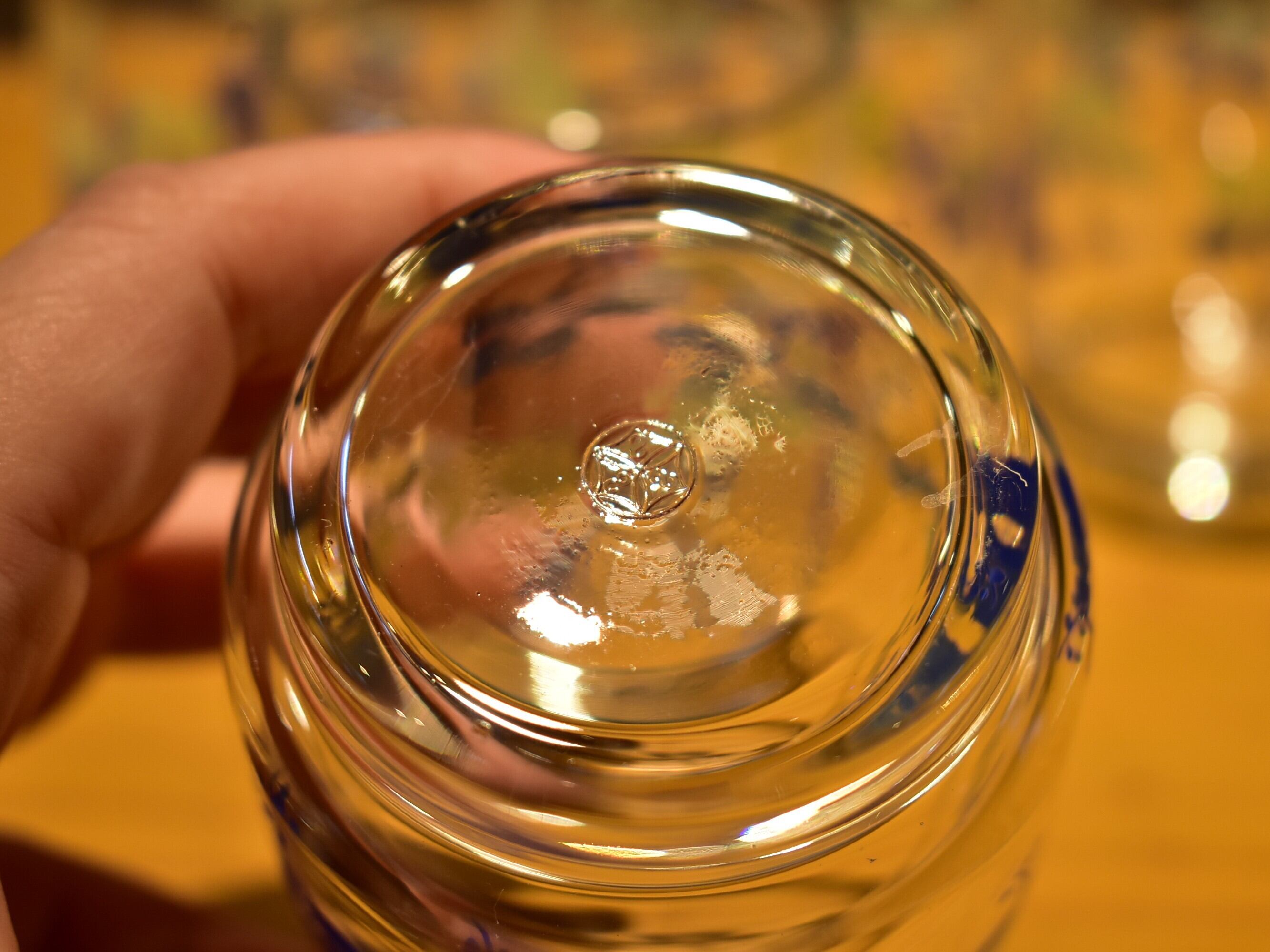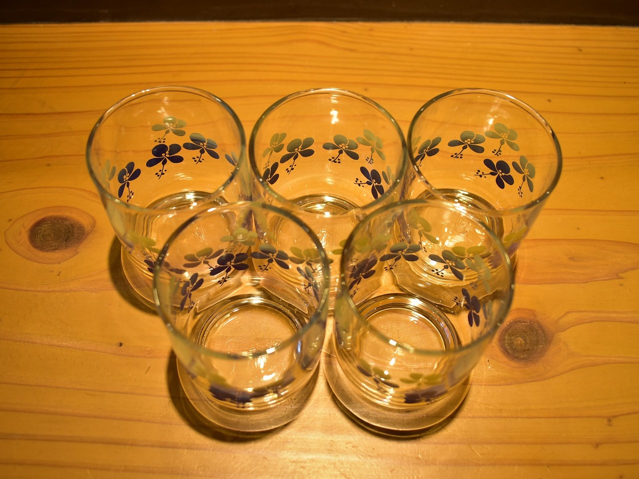 昭和レトロな青い花柄のコップです。絵柄等に擦れなど無く未使用品と思われます。