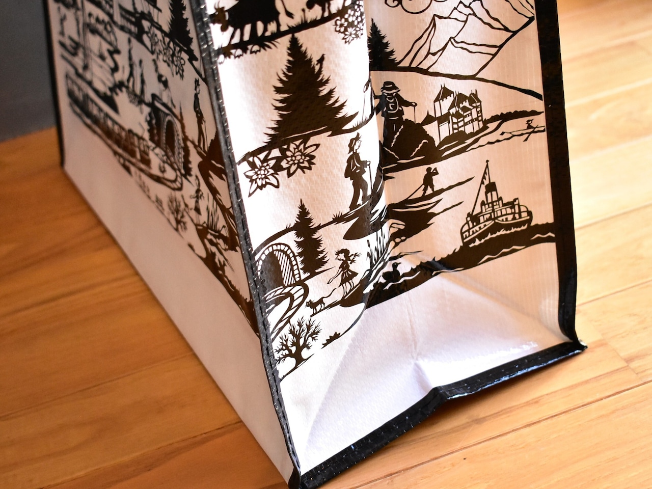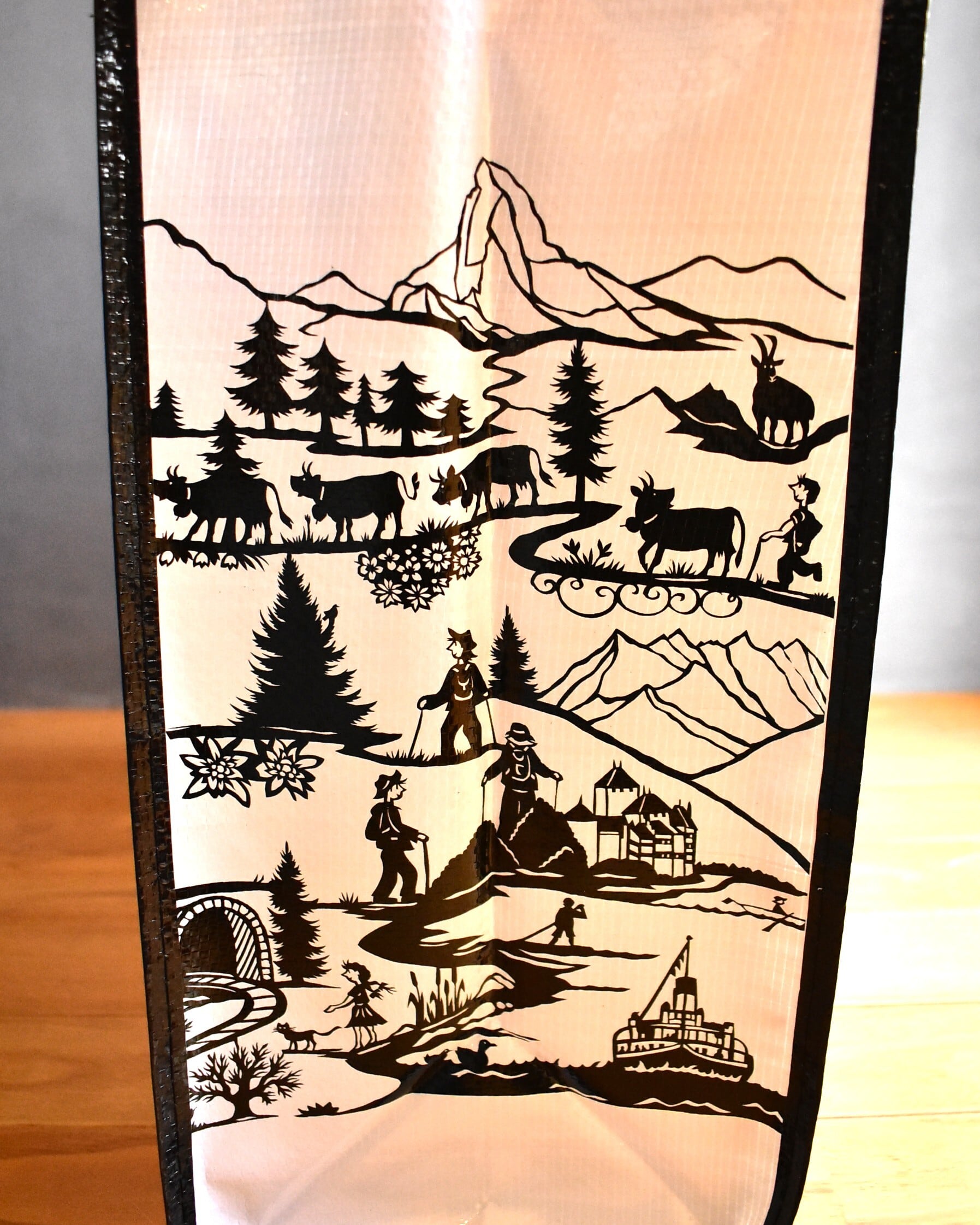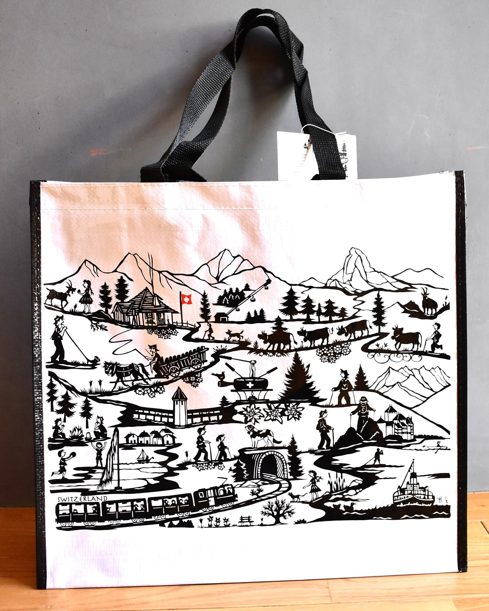 スイスらしい風景が切り絵風に描かれた素敵なエコバッグをスイスから取り寄せました。