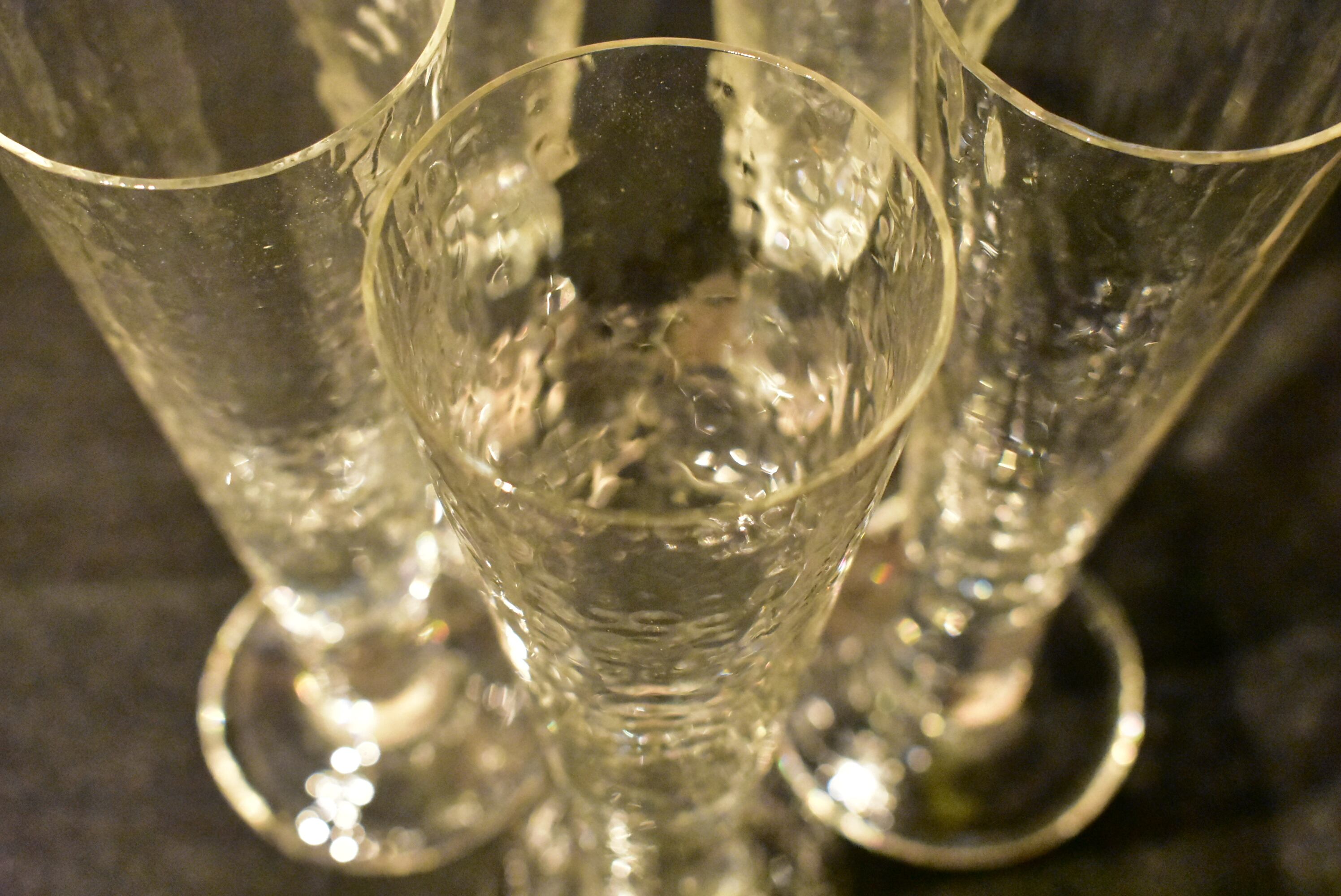 日本で1980年前後に販売されたプーケベリのフルートグラス、5点セット。