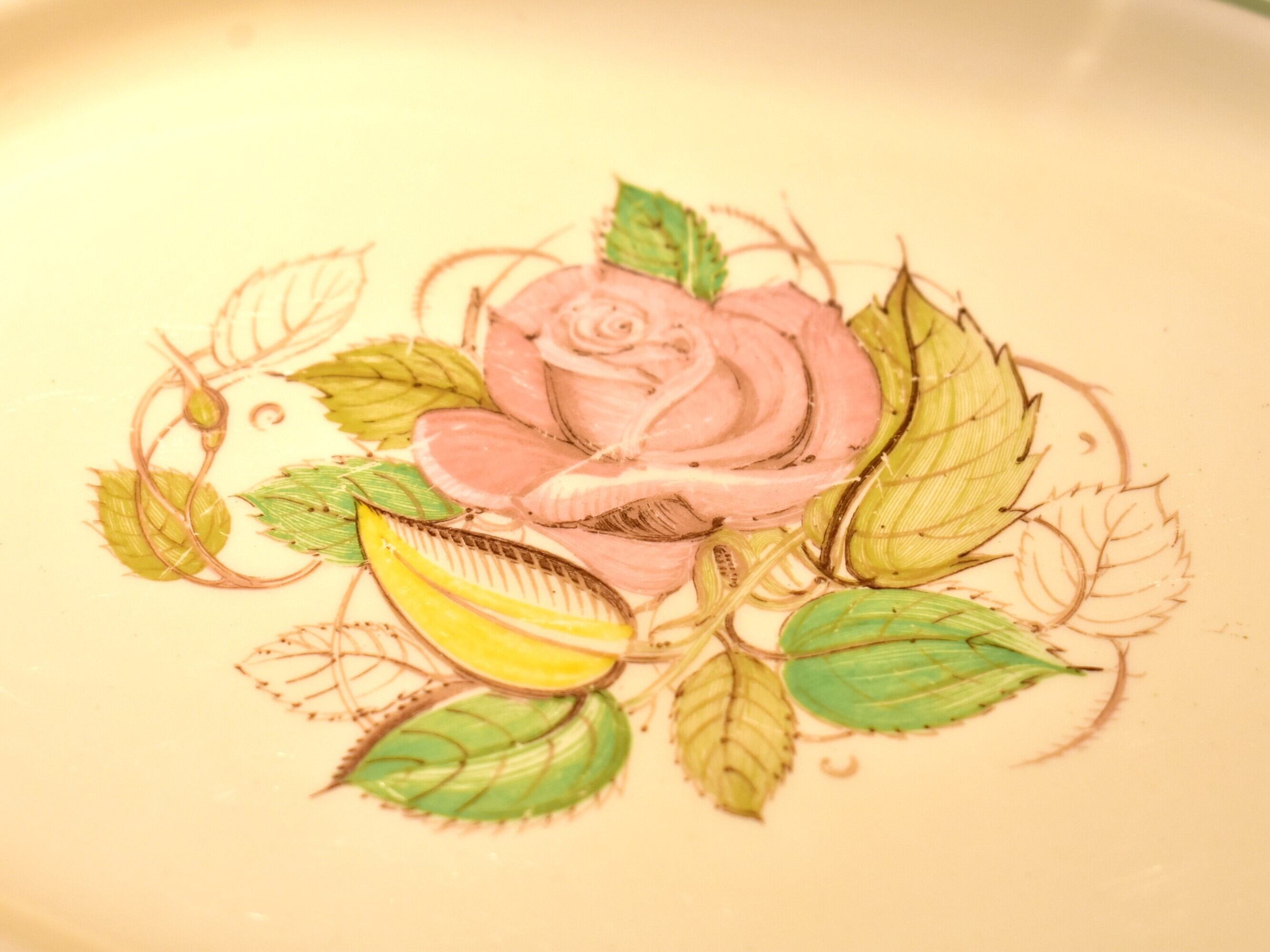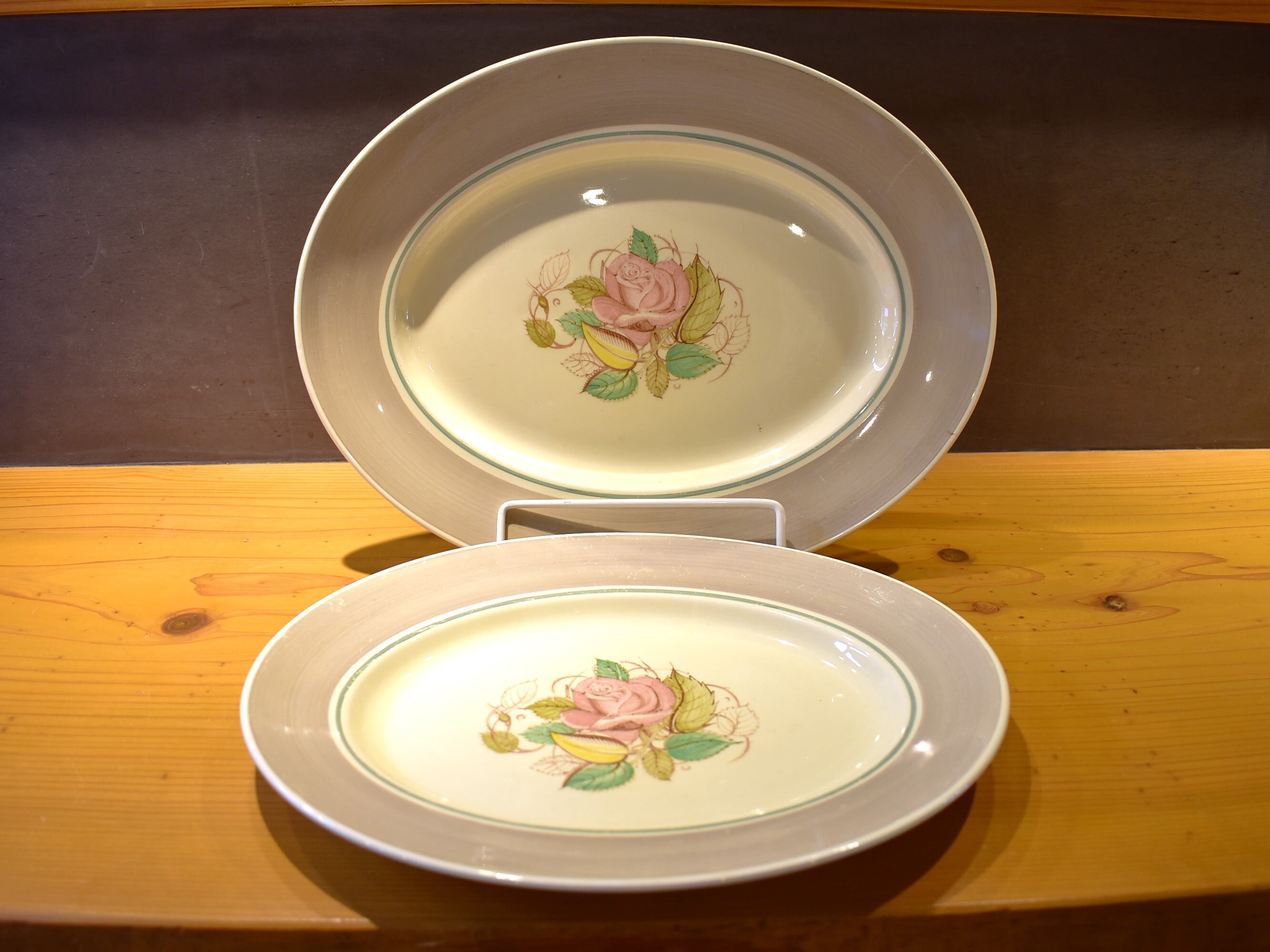 20世紀半ばに活躍した、イギリスの陶器デザイナー、スージークーパーのオーバルプレートです。日本でも大人気ですが、このシリーズのオーバルプレートセットは、国内ではなかなかお目にかかれません。刻印から1932年から1960年に生産された大変古いお品となります。